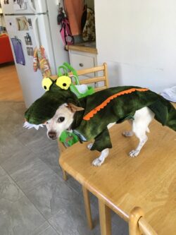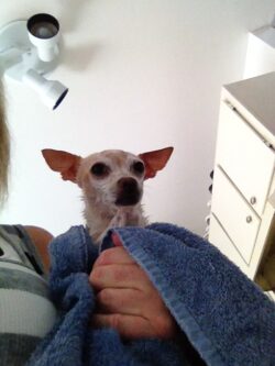 Shortly thereafter, I tried out a midsize terrier who bit and then a pair of tiny chihuahuas (way to much work; I was teaching full time and my kids had left by then). And then I found Minnie.